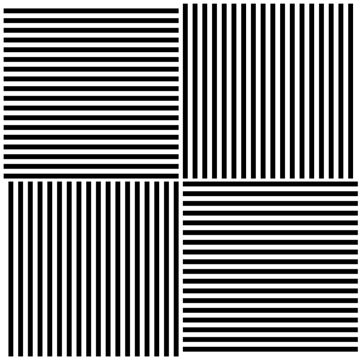 Na skrzyżowaniach białych pasów pojawiają się szare kropki. Jest to również wynik hamowania obocznego - włókno nerwowe, które przewodzi pobudzenie z obszaru skrzyżowania białych pasków, jest hamowane przez cztery sąsiadujące włókna. Tymczasem wszystkie inne hamowane są słabiej - tylko przez dwa.
