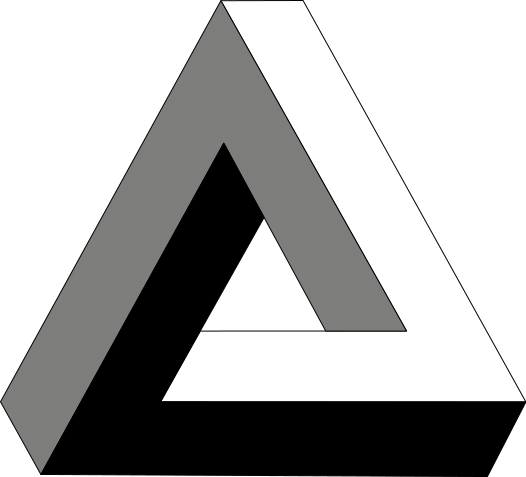 Figura niemożliwa, wymyślona przez szwedzkiego grafika Oscara Reutersvärda w 1936r. Nazwa figury pochodzi od matematyka Rogera Penrose'a, który niezależnie odkrył i spopularyzował ją w latach 50. XX w., opisując jako "niemożliwość w jej najczystszej postaci".