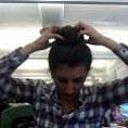 Jeśli chcesz zrobić duży kok wyglądający tak, jakbyś miała mnóstwo włosów na głowie, weź jakąś starą skarpetkę, odetnij jej koniec w miejscu gdzie są palce, zwiń ją na kształt obwarzanka i zwiąż nią włosy tak jak gumką.